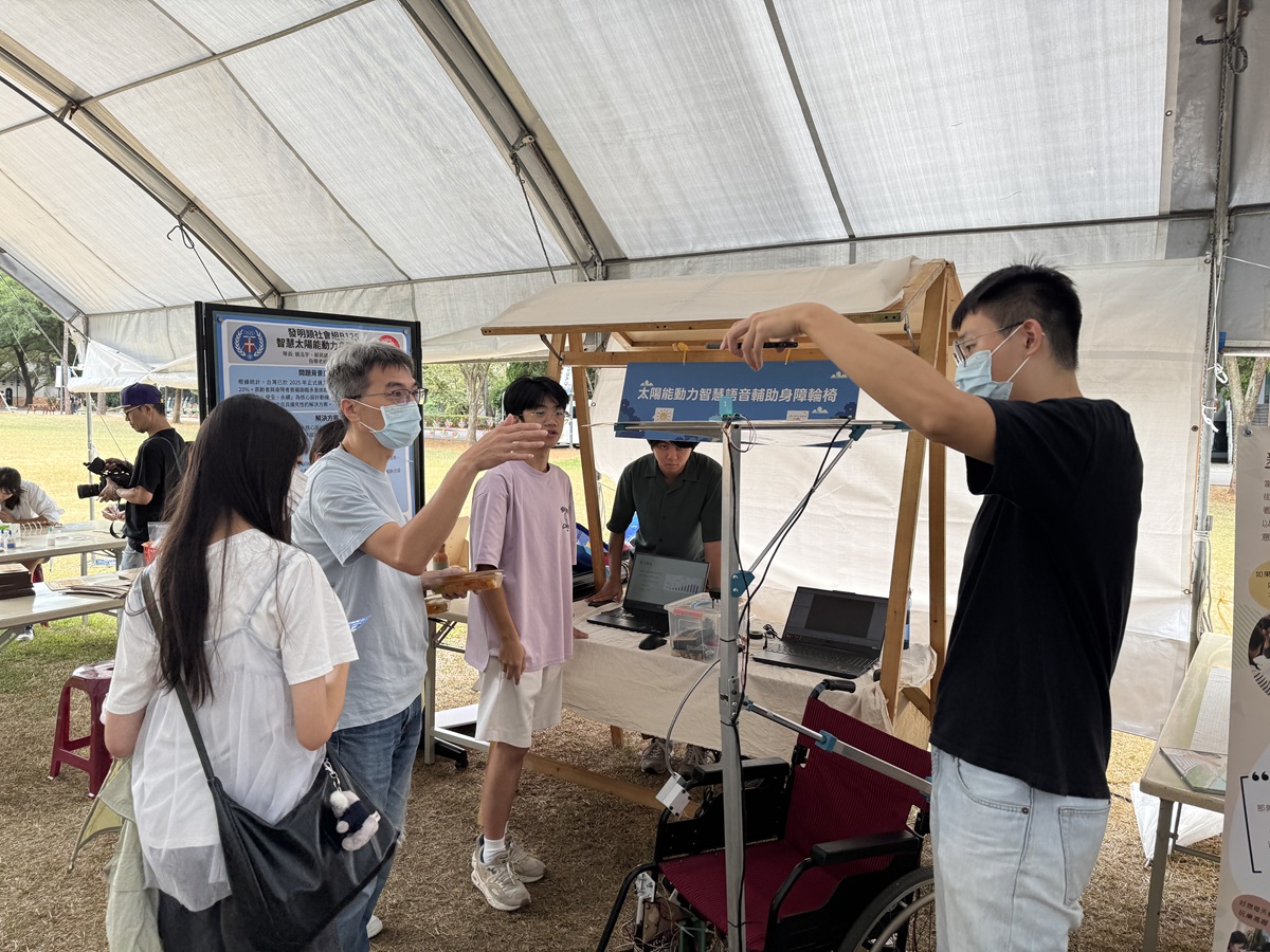 The morning “Harbor Market” gathered Taoyuan-based NPOs and community groups to promote civic dialogue through experiential booths, while the afternoon Achievement Presentation showcased student projects integrating innovation with social care. Highlights included a solar-powered, low-cost wheelchair developed by students under the guidance of Assoc. Prof. Chien-Sheng Huang, winner of a gold medal at the Taiwan Innotech Expo, and a keynote by Ms. Hsu Chien-Wen from Cambodia’s Phare Social Enterprise, who shared how arts education can empower and transform youth communities.