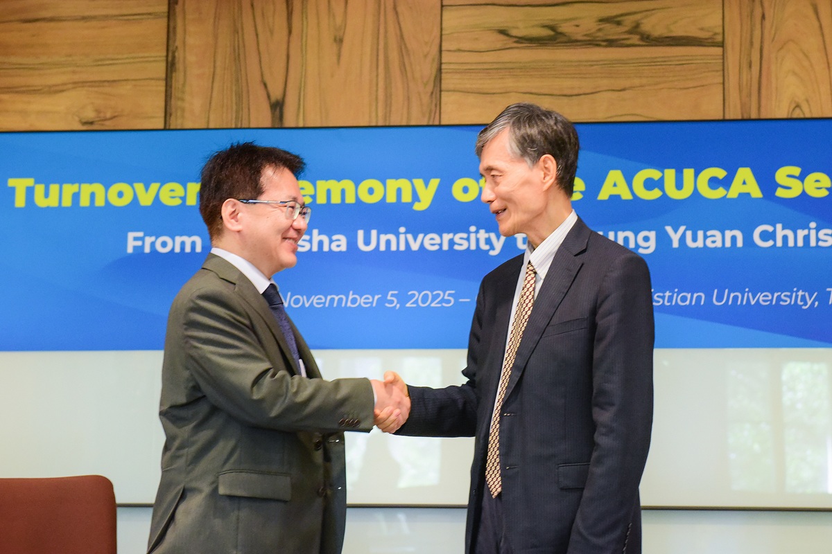To deepen exchange and cooperation in Christian higher education across Asia, a delegation from Doshisha University in Kyoto, Japan, visited Chung Yuan Christian University (CYCU) on November 5 to participate in the 2025 Association of Christian Universities and Colleges in Asia (ACUCA) Secretariat Handover Ceremony.